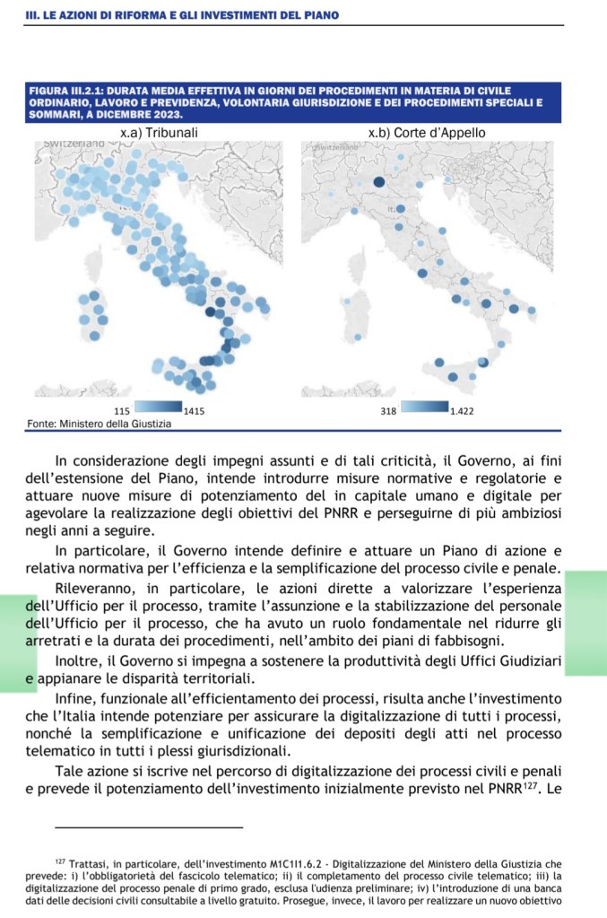 A pag.109 nell’ambito del capitolo dedicato alla giustizia c’è un riferimento alla sorte degli addetti all’ufficio per il processo pur sempre negli ambiti dei fabbisogni. Le cifre verranno fuori col piano di bilancio del 2026, come era prevedibile, essendo i numeri troppo elevati a differenza di quelli dei futuri stabilizzati nella giustizia amministrativa (80 funz. + 10 assist.)